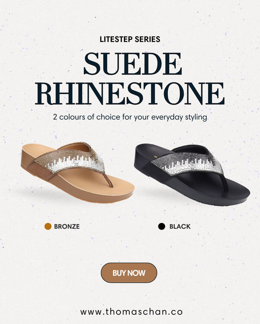 Suede Rhinestone Flip Flops [LiteStep Collection]