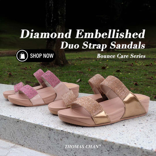 Diamond Embellished Duo-Strap Sandals 1.5"inch [Bounce Care Collection]